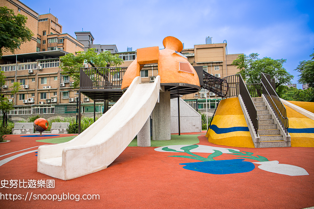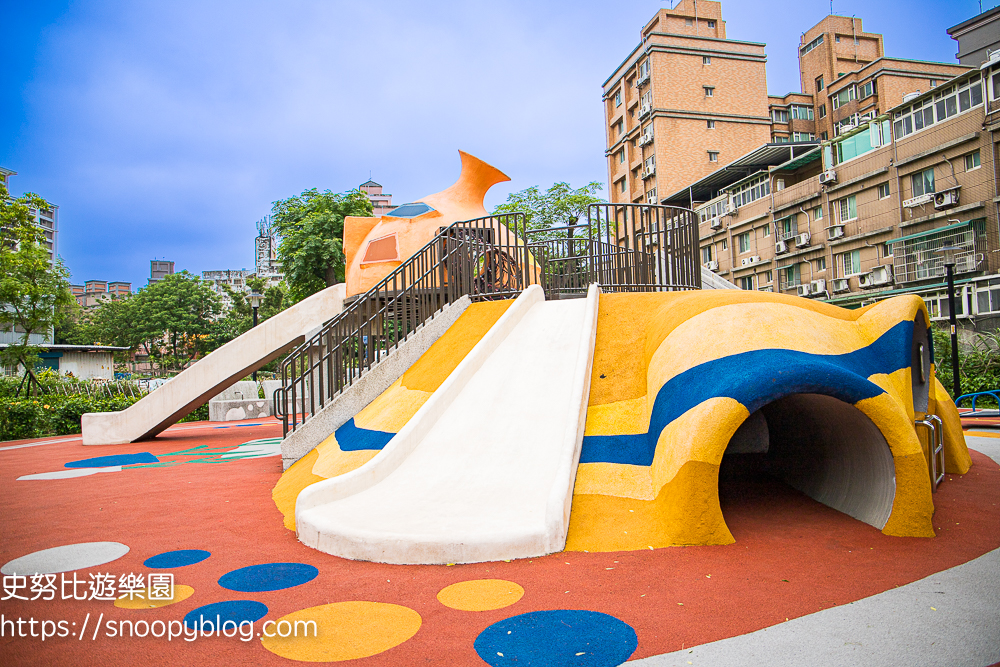 規畫有旋轉溜滑梯、盪鞦韆、沙坑、旋轉盤、戲水池,